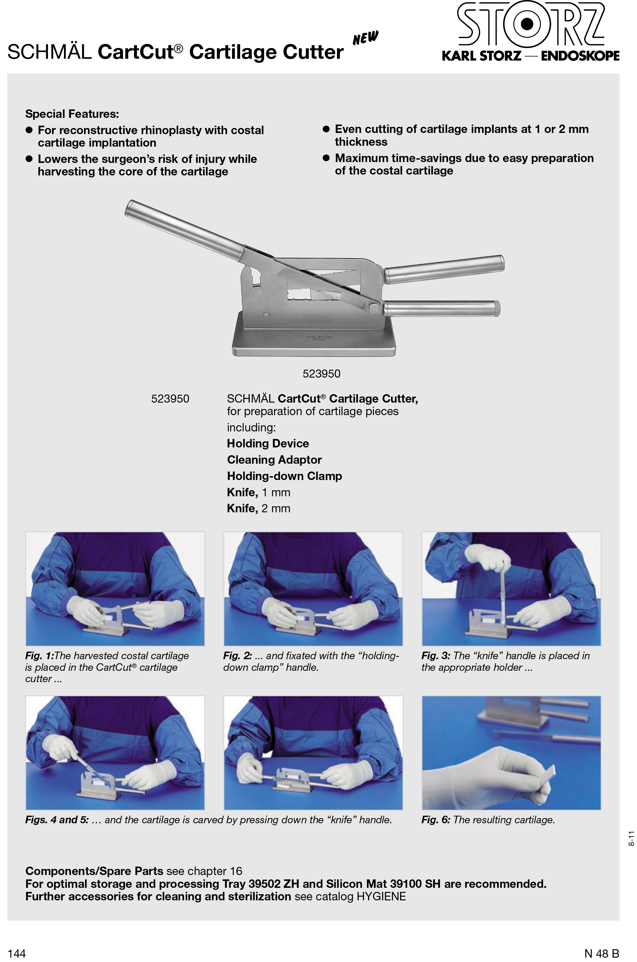 Khay ngâm dùng cho vệ sinh, tiệt trùng và bảo quản dụng cụ. Kích thước bên ngoài (w x d x h): 480 x 250 x 60 mm.