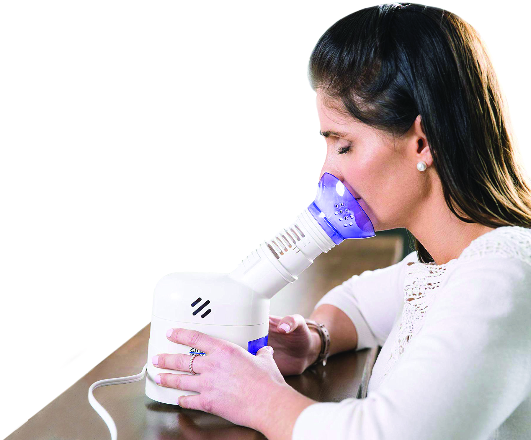 1) Đặt thiết bị trên một bề mặt phẳng, ổn định trong tầm với, với mặt nạ hướng về phía bạn.